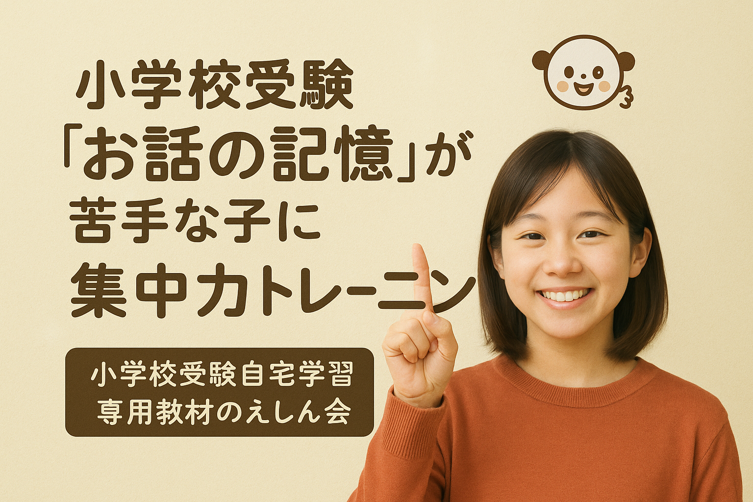 小学校受験でほぼ全校に出題される「お話の記憶」。しかし実際には、お話が聞けない/集中が続かないというお子さまが増えています。えしん会では、問題集の前に行う“耳を立てる=聞く準備”のミニトレーニングを提案。毎日3分で、聞く姿勢・集中・記憶の土台を育てます。